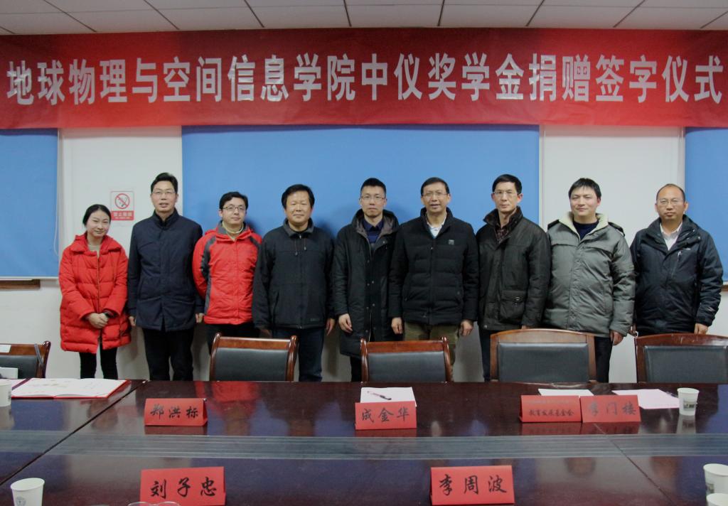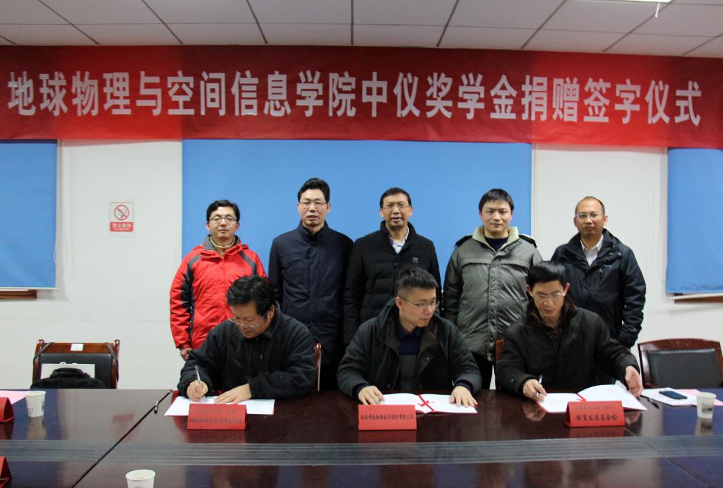 (通讯员 李周波 摄影 祁阳阳)2018年1月5日下午四点,​太阳成集团tyc234cc“中仪奖学金”捐赠仪式在物探楼214会议室举行。武汉中仪物联技术股份有限公司董事长郑洪标,总经理助理张婉珈,公司党委副书记、纪委书记成金华,公司教育发展基金会副秘书长李门楼,公司党委书记刘子忠、副书记李周波、教师代表王毅教授、张学强副教授、张世晖副教授、辅导员祁阳阳、公司教育发展基金会工作人员等参加座谈会。会议由李周波主持。