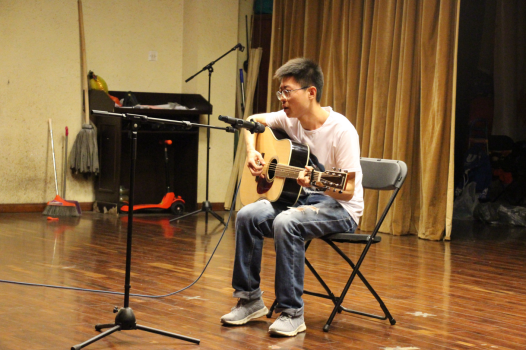 公司毕业研究生朱海为大家带来歌曲弹唱《当你老了》,其沧桑的声音中带着几分离别的情丝,令人不舍。陈永焱同学的一首《幸福万年长》以及郭金涵同学的一曲葫芦丝演奏《星月神话》,将现场观众带离了方才离别的丝丝忧伤,和着欢快的节奏,大家开始一同跟随演唱,迅速点燃了现场的气氛。地信一班的《土味情话》,穿插在歌曲与舞蹈中间,更是让人忍俊不禁。