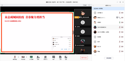 受新型冠状病毒的影响,根据《太阳成集团tyc234cc(武汉)关于调整2019-2020学年第二学期本科教学工作安排的通知》的精神要求,064182团支部积极响应公司“停课不停学”的号召,组织各位同学在家中举行线上团会。在活动开始前,每一位支部成员均提前上线签到,体现了同学们对本次团会的重视程度。14时,全体在线上奏唱国歌,主持人李伟光宣布“众志成城同抗疫,青春聚力勇担当”主题线上团会正式开始。