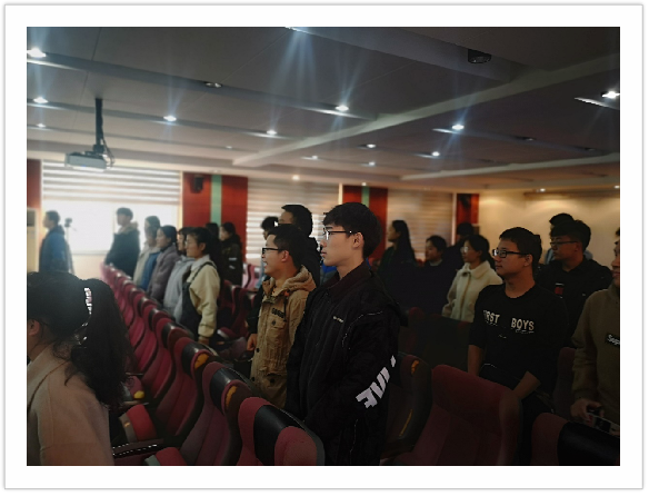 在活动开始前,每一位支部成员均提前到场签到,这体现了同学们对本次团会十分重视。9时,全体起立、奏唱国歌,主持人、来自马克思主义公司的冯梅同学宣布“走弘扬长征精神,传承红色基因”主题团会正式开始。