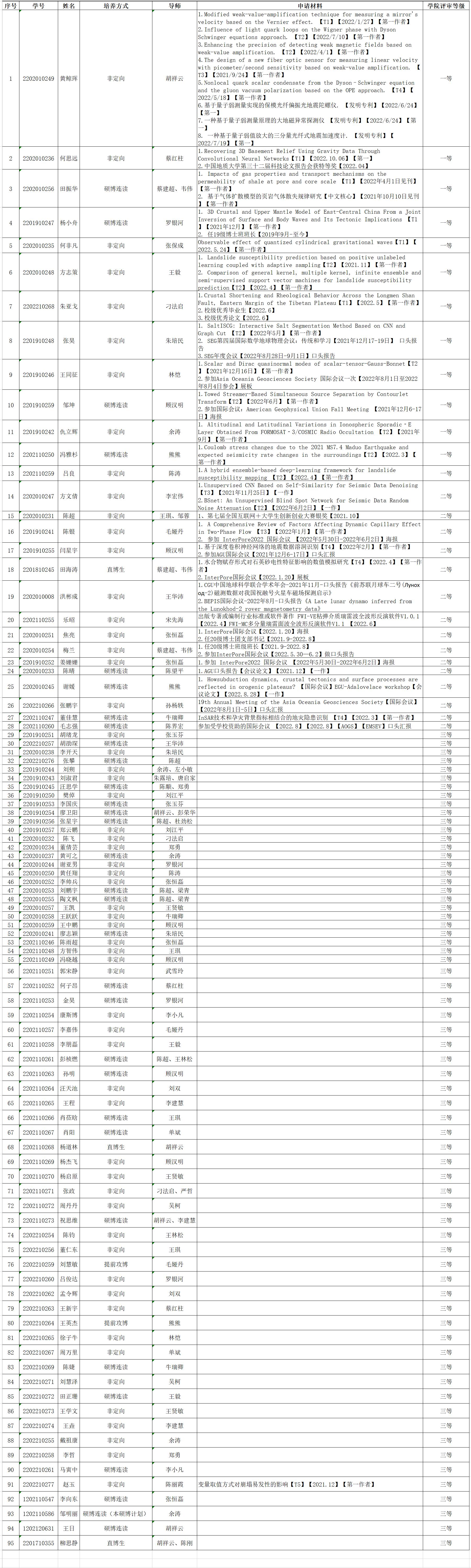 本公示中的评定等级为博士奖助学金中的公司学业助学金等级,学业奖学金及国家助学金部分不分等级,根据公司发布的参评条件及资助对象要求,符合相关条件的同学均获评。