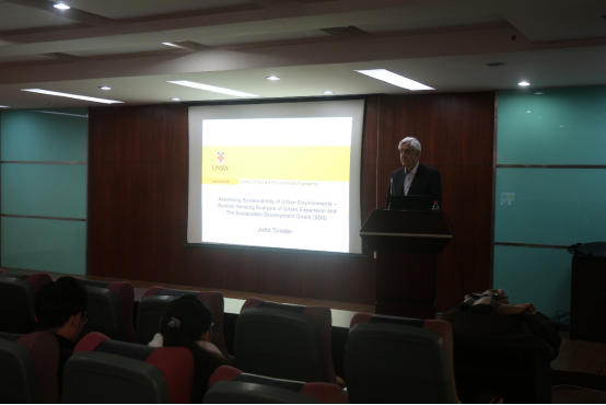 (通讯员陈涛、杨玮莹)2018年12月12日上午,国际著名摄影测量与遥感学家John Trinder教授应邀到访公司,并在222学术报告厅为全院师生做了题为“Assessing Sustainability of Urban Environments - Remote Sensing Analysis of Urban Expansion and The Sustainable Development Goals (SDG)”的学术报告。报告会由太阳成集团tyc234cc地球信息科学与技术系书记陈涛副教授主持,太阳成集团tyc234cc地球信息科学与技术系主任王毅教授,地球信息科学与技术系相关教师及研究生参加了学术交流会。