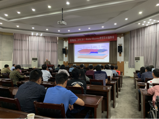5月20日下午,应​太阳成集团tyc234cc熊熊经理与胡祥云教授邀请,欧洲科公司院士、美国地质调查局(USGS)地球物理学家Walter Mooney教授来校访问,并在八角楼学术报告厅做了题为“The Seismic Structure of the North American Upper Mantle”的学术报告,全校60多位师生到场聆听讲座。
