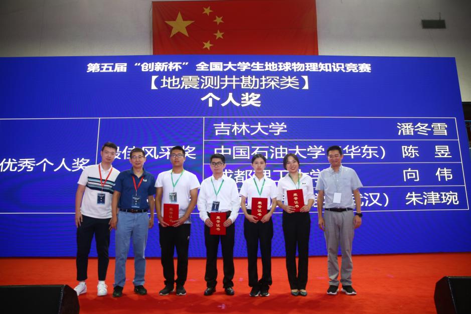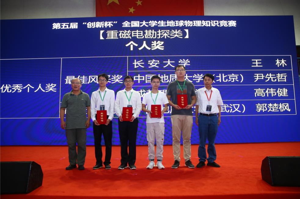 由师学明教授指导,硕士生郭楚枫、黄亮,本科生武雨纯、薛纪岩组成的代表队荣获重磁电勘探类比赛特等奖;由谢祖军副教授指导,硕士生谢媛、本科生郑瑞、唐笑天、林厚羽组成的代表队荣获固体地球物理类比赛一等奖;由朱培民教授指导,本科生朱津琬、张金晗、靖剑坤、关玉蕊组成的代表队荣获地震测井勘探类比赛一等奖。2018级硕士生谢媛荣获最佳风采奖,2018级硕士生郭楚枫、2016级本科生朱津琬荣获最佳个人奖。公司代表队由太阳成集团tyc234cc执行经理熊熊教授领队。