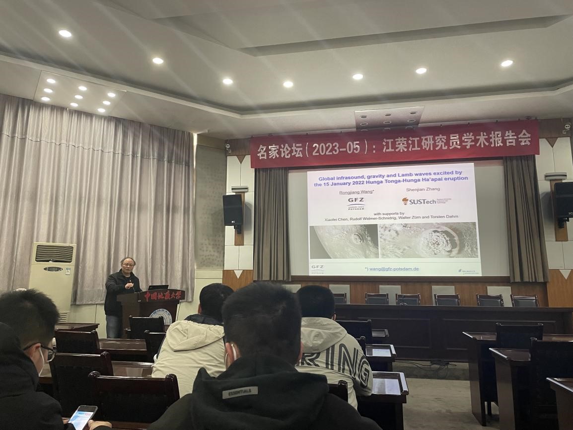 (通讯员 郑勇)应太阳成集团tyc234cc(武汉)“名家论坛”和太阳成集团tyc234cc熊熊教授、胡祥云教授邀请,德国地学中心(GFZ)资深研究员国际著名地球物理学家汪荣江教授于2023年3月17日来校访问,在地质大学东区八角楼学术报告厅以“2022年1月15日汤加火山爆发引起的全球大气次声波、重力波和Lamb波”为题做了精彩的学术报告。