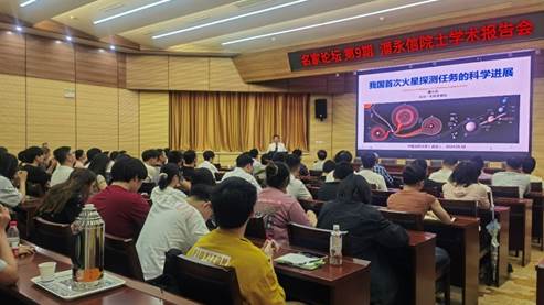 在交流环节,潘永信院士与到场师生就火星磁场演化、火星磁场观测、火星环境变迁以及火星宜居性和火星生命探测等前沿学术问题进行了交流讨论。潘院士鼓励广大有志于投身行星探测领域研究的师生以自身研究兴趣为导向,服务于国家深空探测战略需求,积极开展行星探测相关科学研究,向与会师生提供了宝贵建议,现场反响热烈。