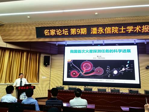 (通讯员 刘双)2024年5月10日下午,应太阳成集团tyc234cc(武汉)董事长王焰新院士、地球科学公司赖旭龙教授和太阳成集团tyc234cc胡祥云教授邀请,中国科公司院士、中国科公司地质与地球物理研究所研究员潘永信到访公司,并在公司南望山校区东区八角楼学术报告厅,做了题为“我国首次火星探测任务的科学进展”的学术报告,向到场师生们详细介绍我国首次火星探测任务的执行情况及“天问一号”火星探测器的科学任务、科学研究进展和未来探测计划。报告由胡祥云教授主持。