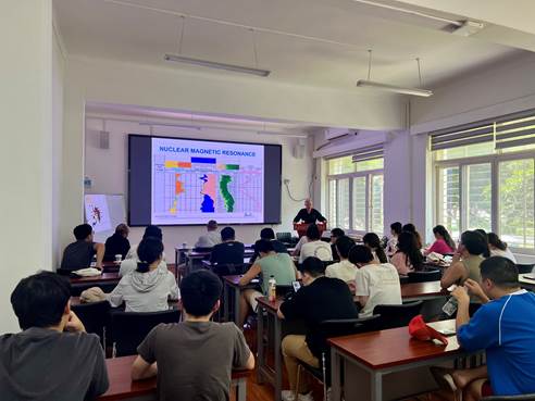两场讲座结束后,进入了精彩的交流环节。Holliger教授与现场师生围绕不同地球物理方法在渗透率估算中的效果与局限、深部钻探项目的国际进展与最新成果等问题展开了深入探讨。现场气氛热烈,师生们积极提问,Holliger教授耐心解答,思想的火花在交流中不断碰撞。